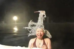 Inside the cave, hot mineral showers cascade from the ceiling, forming shallow pools perfect for a natural steam bath. The cave’s temperature ranges from 40–42°C, the main pool sits comfortably at 35–38°C, and the cold plunge offers a brisk 4–10°C refresh.