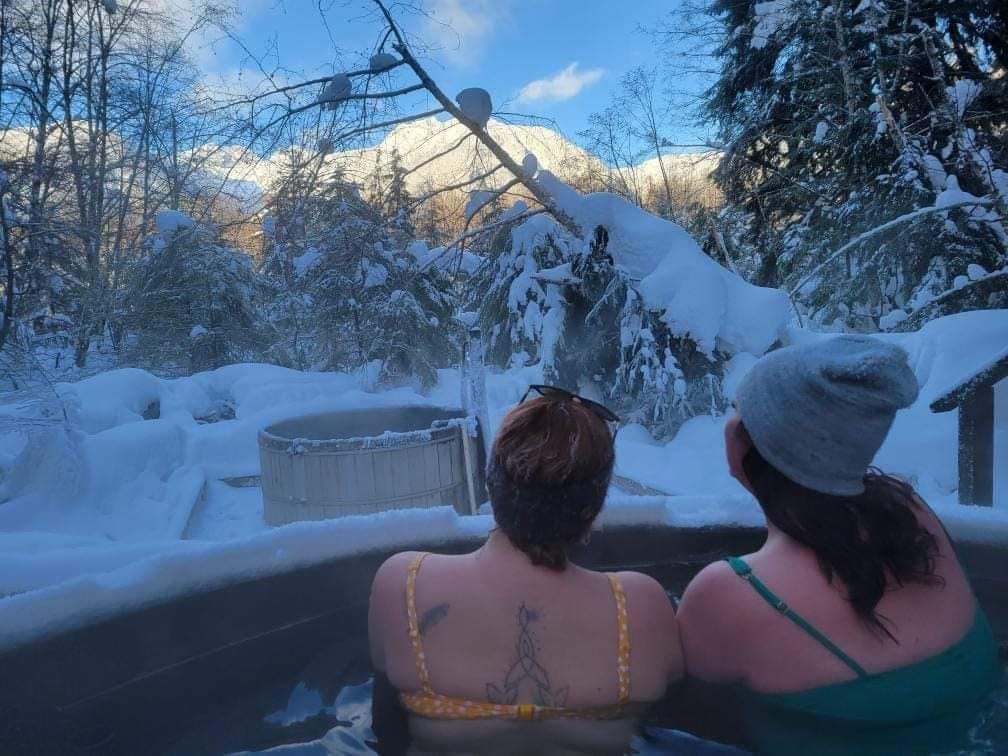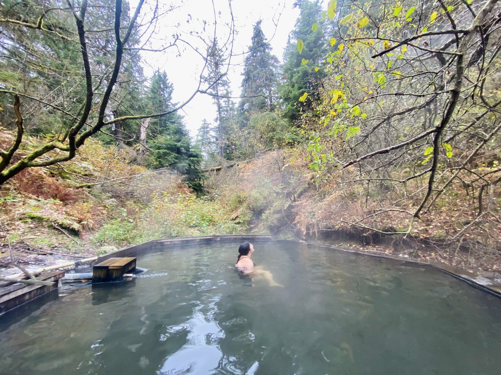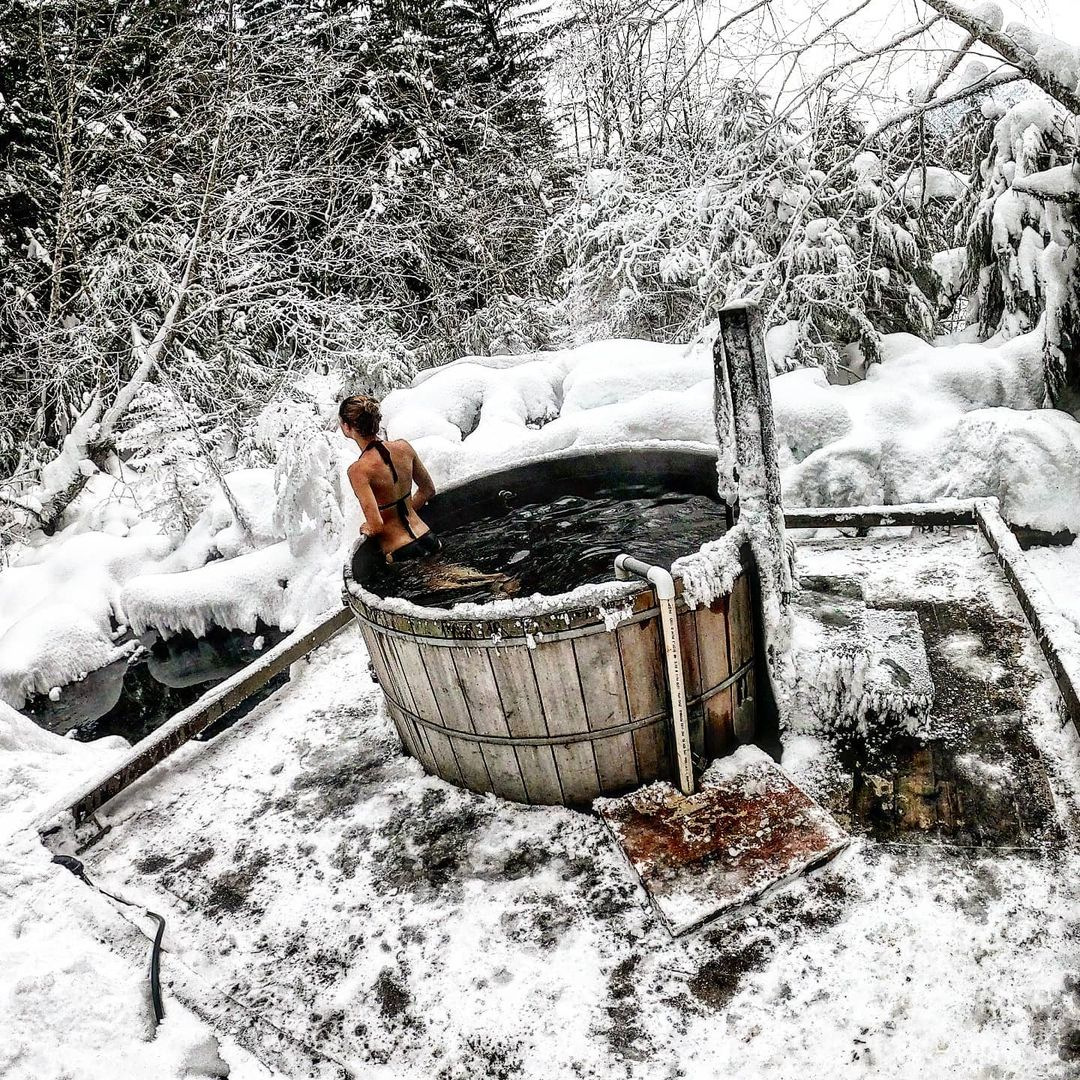 Drive through the lava fields of Nass Valley to Aiyansh Hot Springs, a culturally important, declared heritage site. Find the little pull-out. You can’t miss it; the signs are visible, and the parking lot is huge. You could fit eight to twelve cars there. It’s 5km from the creek near the posted position and a five-minute walk to the springs. The trailhead is a little steep and can be slippery, particularly in winter.
