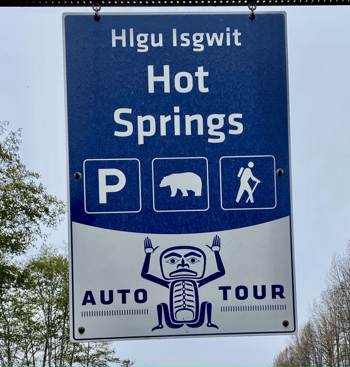 On the south side of the highway, about 500 metres east of Ksi Ansit’aagan (Ansedagen Creek) is the parking lot for Aiyansh Hot Springs. The route has been refurbished with ramps to make it easier to access, as well as extra changing rooms. About 50 metres from the trailhead, there is a rest spot.