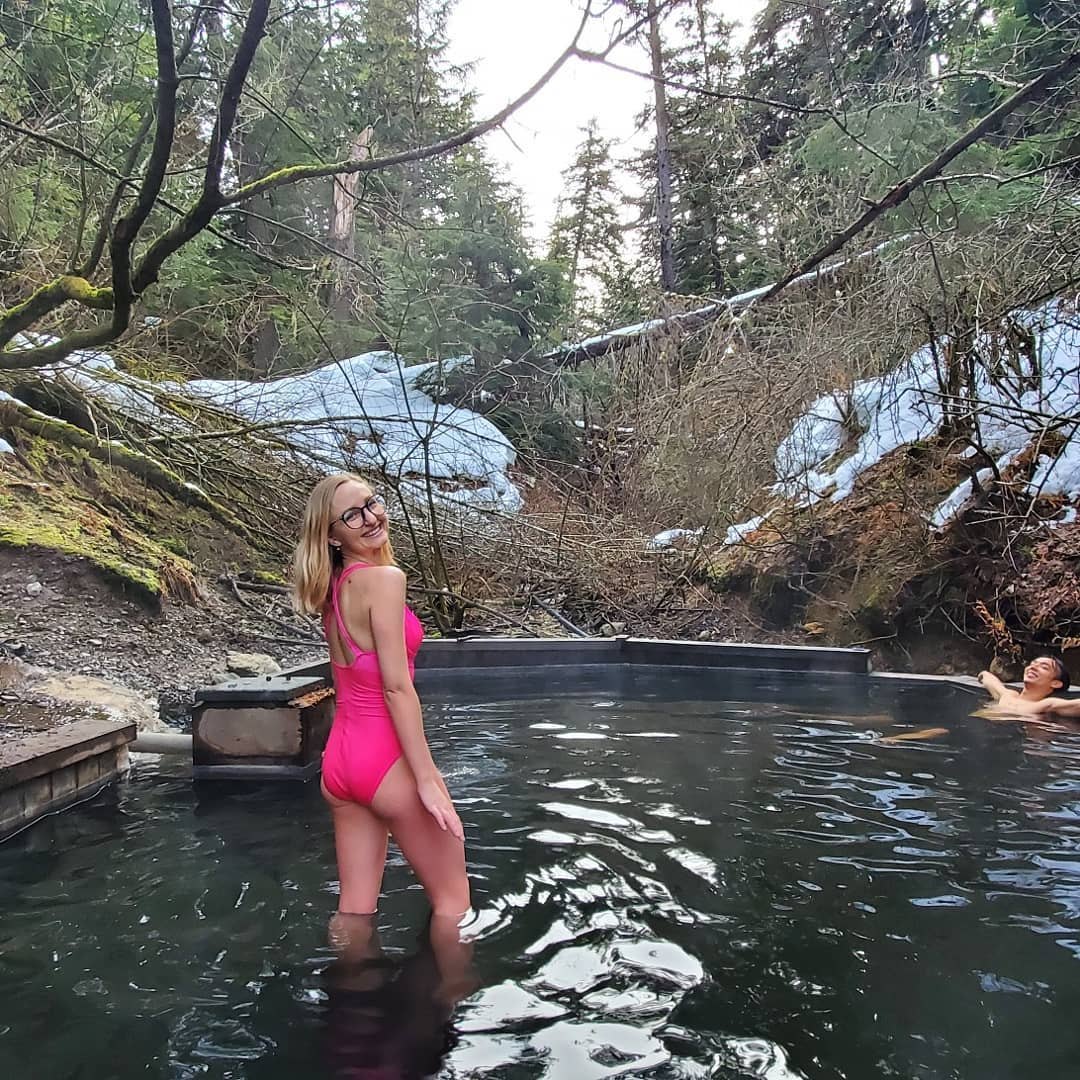 Drive through the lava fields of Nass Valley to Aiyansh Hot Springs, a culturally important, declared heritage site. Find the little pull-out. You can’t miss it; the signs are visible, and the parking lot is huge. You could fit eight to twelve cars there. It’s 5km from the creek near the posted position and a five-minute walk to the springs. The trailhead is a little steep and can be slippery, particularly in winter.