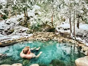 In the Baker Hot Springs geothermal pools, you may sit, soak, and relax. This secret sanctuary is located about an hour and a half outside of Bellingham, in the Mt. Baker-Snoqualmie National Forest.