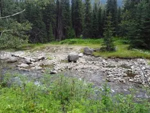 The stream and marsh below the Cave and Basin are relatively clean “warm water” ecosystems as compared to the springs themselves. However, following the war, inhabitants of Banff put a variety of tropical fish into the marsh, indicating that human intervention was at work (no one seems to know exactly when this happened). Angelfish, guppies, and tetras have all been seen in the marsh at one time or another, but they did not survive and are likely no longer existent. Gambusia affinis (mosquitofish), Poecilia latipinna (sailfin mollie), and Hemichromis bimaculatus are three invasive tropical fish species that have been found in the marsh (the jewel cichlid).