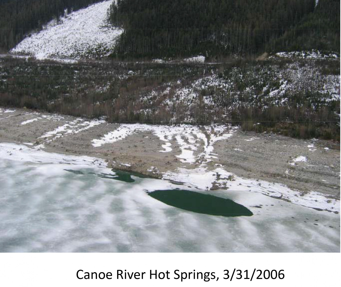 In 1969, there was a logging camp on the Canoe River, and the excitement of going to the springs on winter weekends via logging bridges and old skid roads to soak in the hot springs. They mostly used the tub near the cabin, but there are three primary hot places in the region.