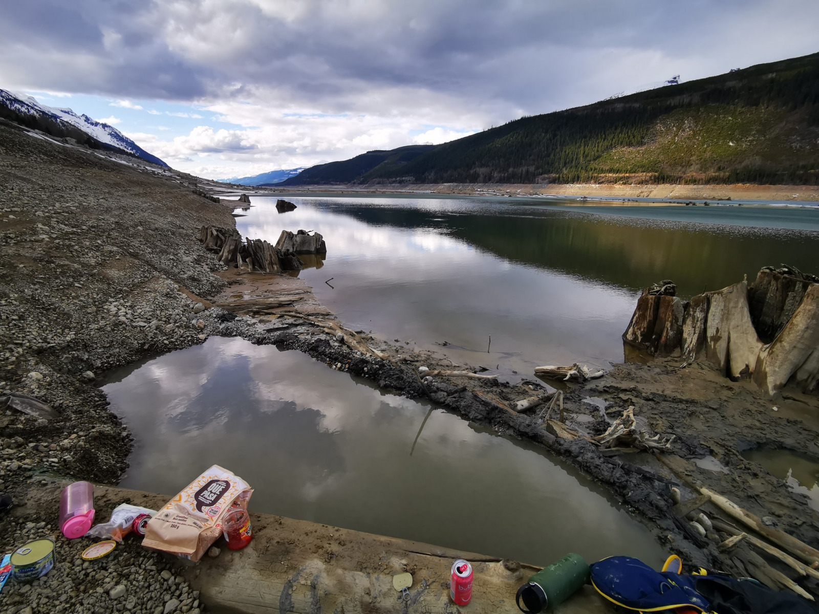 The clearing of forests on a large scale began in 972. The Mica reservoir would be filled, and the remnants of the logged forests and hot springs would be drowned beneath Kinbasket Lake, transforming the landscape dramatically.