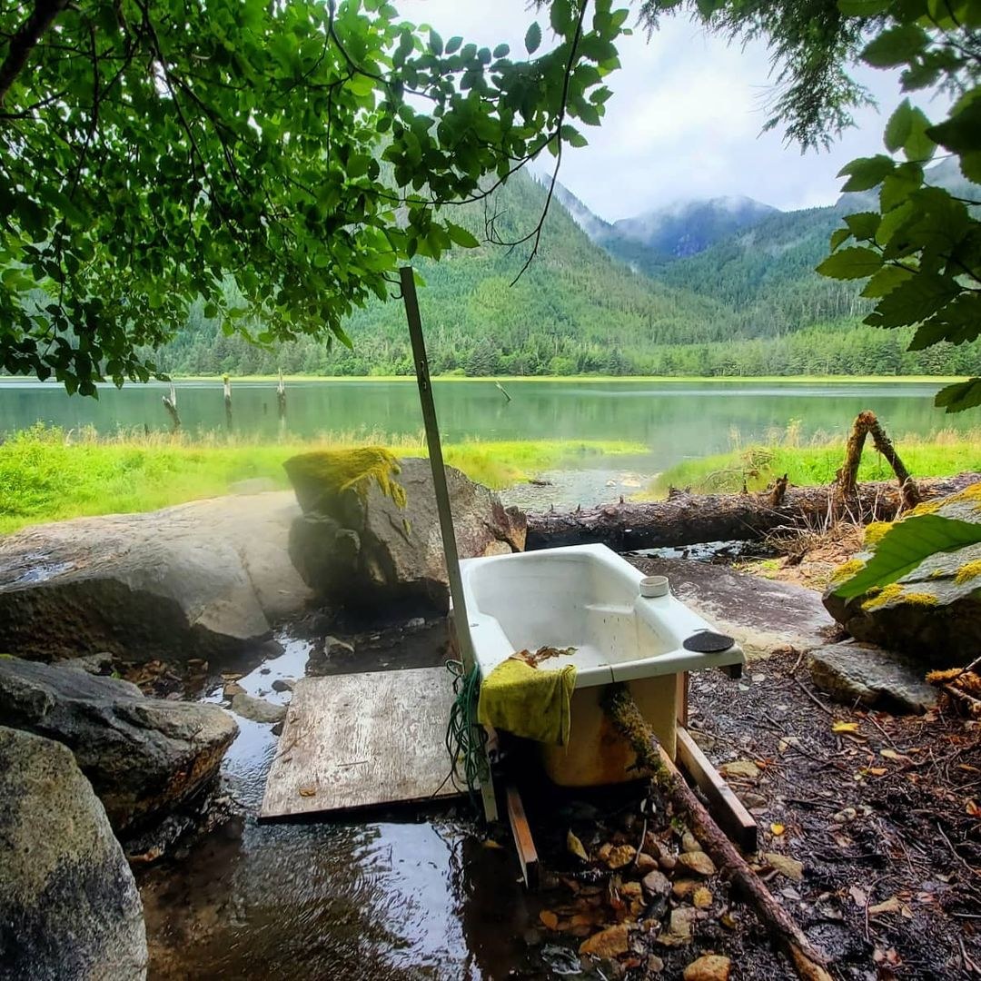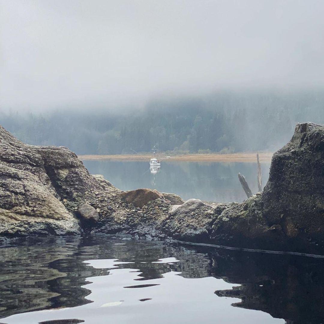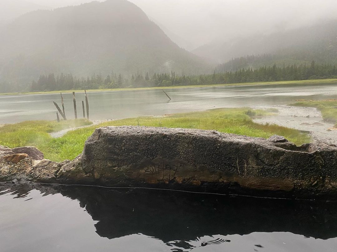 A former pulp Mill Town situated 20 km to the West. In its Hayday in the 1940s and 50s, the town had over 3,000 residents. Eucott Bay Hot Springs had a few permanent residents who cobbled together Beer Money by fishing for crabs and doing a bit of logging. In those days, the bay had a raft with a floating bathhouse just offshore. And a wooden bathhouse on land. The Pulp Mill that was the life of Ocean Falls closed in 1981.