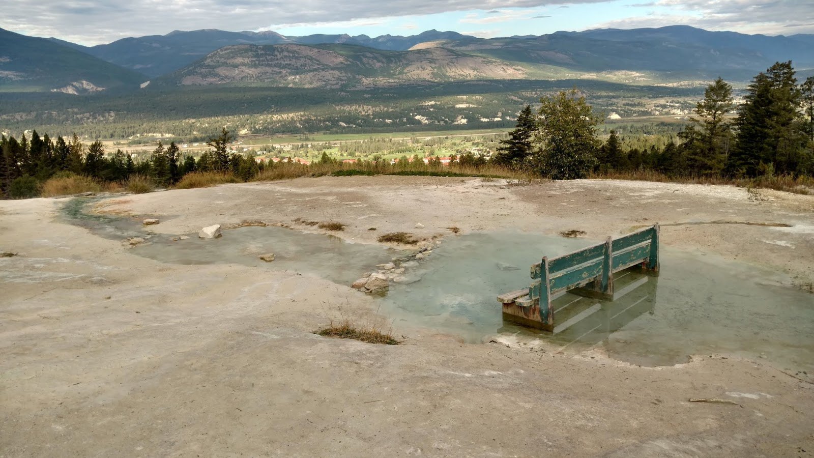 There is a path down towards the RV park outside of the commercial springs. A creek runs down the mountainside, separating the resort from the camping area. Just beside the creek, a gravel trail leads you toward the hot pool run-off areas.