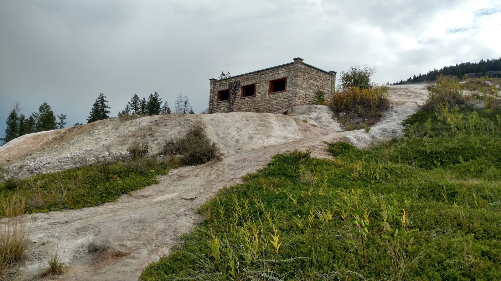 Later, a stone building was built on Fairmont Resort grounds, along a road connecting the parking lot to the resort’s trail system