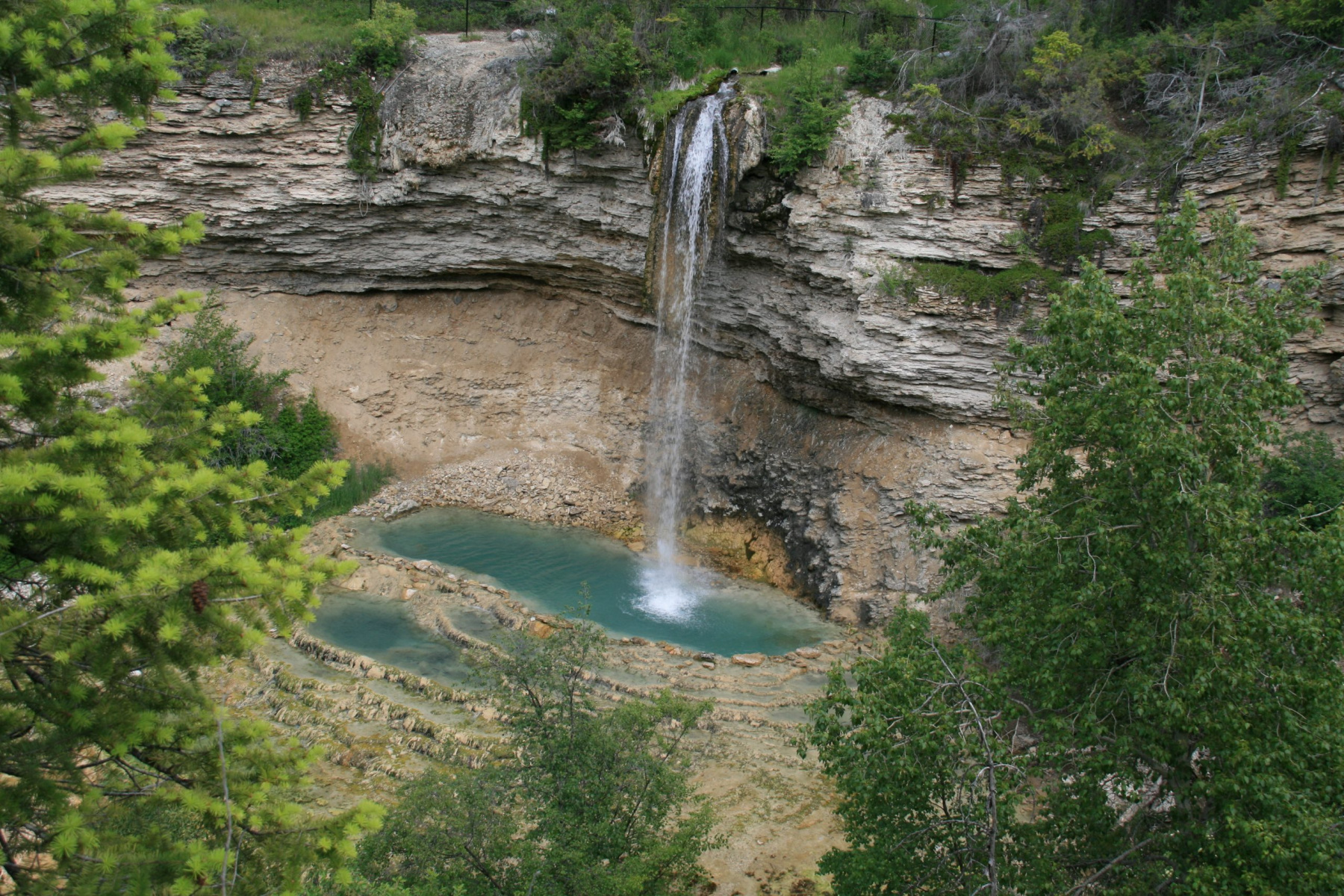 The hot water cascades from the cliffs above and enters several shallow pools. These springs aren’t particularly deep, but the water is hot enough
