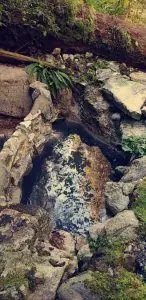 You’ll reach the spot where Gamma Creek meets its tributary after approximately 2.4km. If you continue straight, you will encounter a very steep fall; alternatively, take the right slope to the tributary. Continue down Gamma Creek for another 0.5km after crossing the tributary. On a rocky slope, it’s difficult to see the trail, so be cautious. It’s also critical that you don’t immediately descend to the creek after crossing the tributary; instead, stay about 10 to 20 feet up on the bank. You’ll start to smell the springs.
