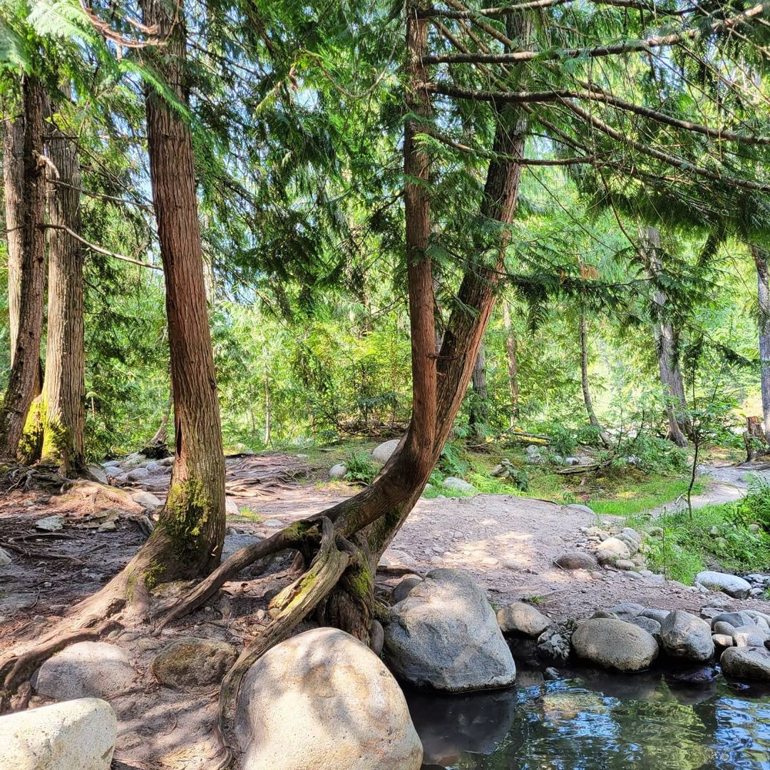 Drive approximately 11.5 kilometers to the main FSR parking area. At 11.5 kilometers, you will come to a fork in the road that is clearly marked. The left path leads down into the recently built camping area, where there is also some day-use parking. The right will lead you to the upper parking lot, which is ideal for daily use and access to the major pools.