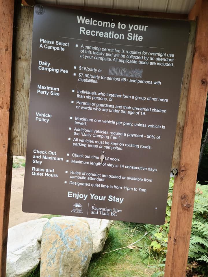 These fees will be collected under an agreement on behalf of the Ministry of Forests, Lands, and Natural Resource Operations. They will be used to mitigate site abuse and offset the cost of providing this service.  Fees of $15.00/night ($7.50/night for seniors) will be collected.