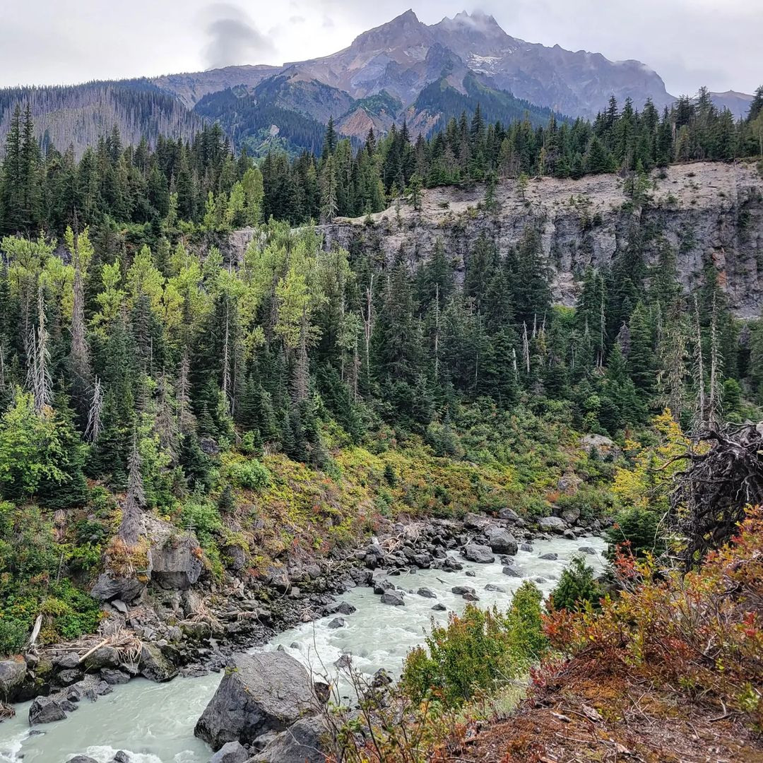 The Lillooet River is powered by many glaciers and snow-capped mountains visible all the way to Pemberton. Take a look in the distance at the Lillooet River crossing in Pemberton Meadows, and you’ll see Mount Meager, a spectacularly jagged and violent-looking mountain.