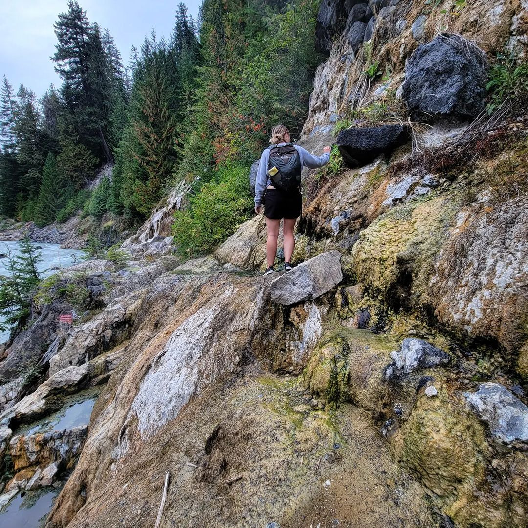 It’s also a safe place to think about Mount Meager, which caused Canada’s largest volcanic eruption in the last ten thousand years. It happened about 2400 years ago, and Keyhole and Meager Hot Springs are signs of recent volcanic activity, with another significant eruption conceivable. Keyhole Hot Springs has a pretty complex hot springs layout for such a remote location, as well as a very big (unmaintained) camping area in the deep forest, high above the hot springs, about a 10-minute walk away.