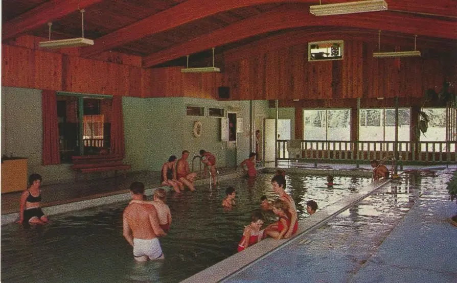 Four therapeutic pools and waterslides were available. The Main Pool (30°C/90°F) has a wide bathing room, a dive pool, and a roped-off wading pool for younger visitors. A soak in the Hot Tub pool’s soothing mineral water (41°C/105°F). can provide relief from rheumatism, arthritis, and skin ailments. Visitors and residents appreciate the medicinal appeal of the abundant non-sulfur mineral water treated with an ozone filter, the first in Canada by a public pool. With the economic crisis, this establishment was forced to close and attempts to restart as recently as 2015 were futile.