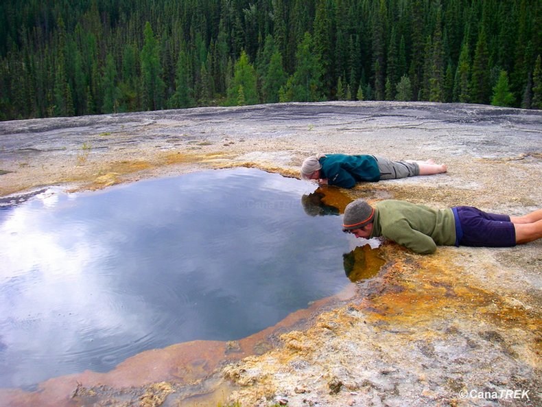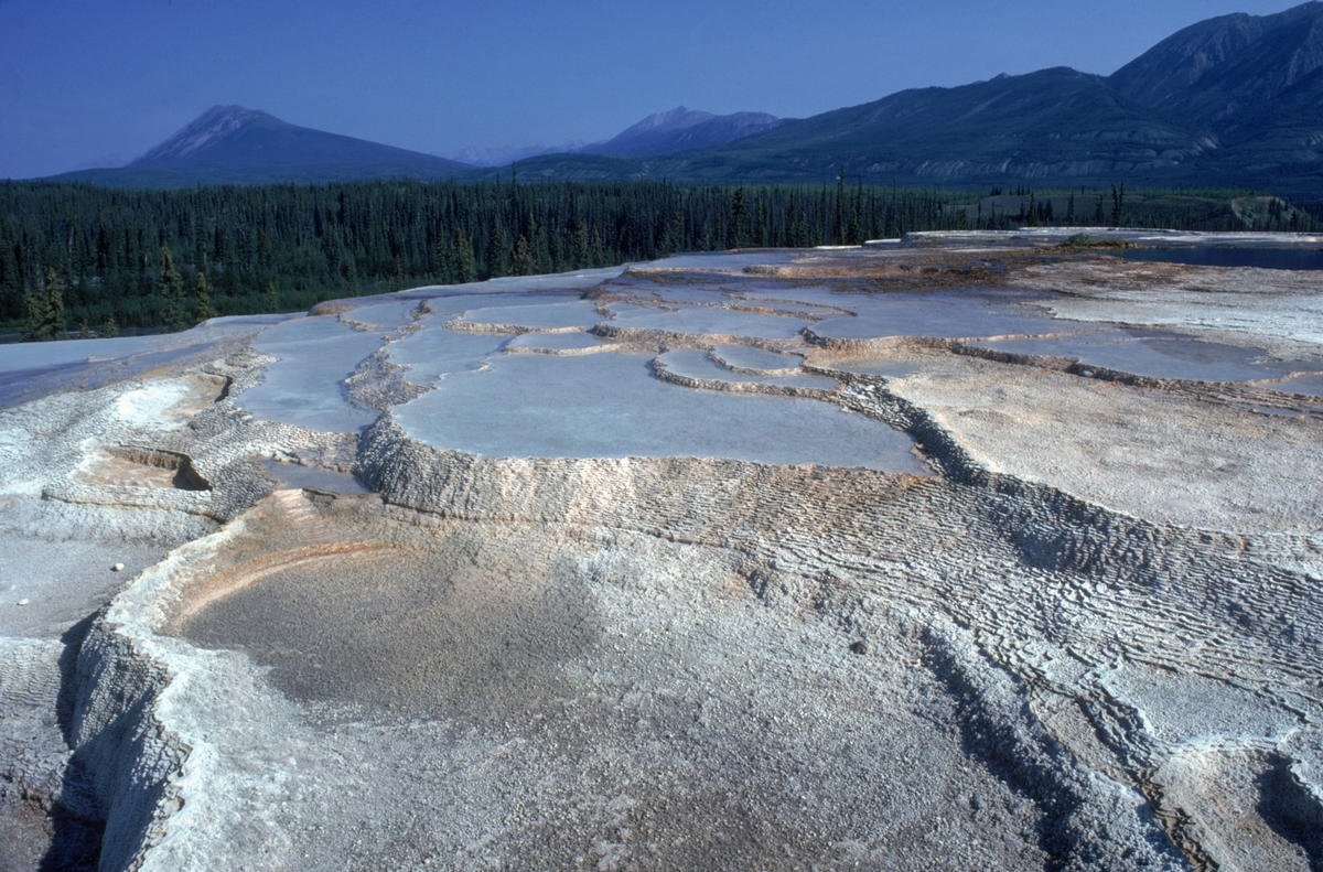 Rabbitkettle gets its name from the Dene word gahnhthah, which means “kettle.” Because of the unusual shapes of the basins in the area, English-speaking inhabitants dubbed it “Rabbitkettle.” The Dene treated the springs as a sacred site, leaving offerings such as tobacco to ensure good fortune.