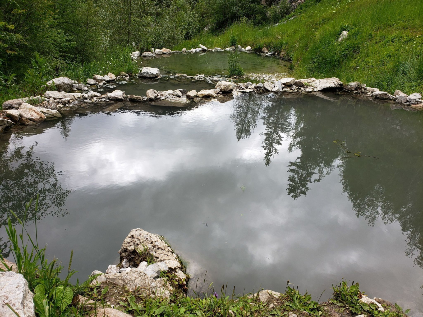 They have the feel of a warm spring. The water temperature was comparable to that of a bathtub, hot enough to soak in all day if desired. When visiting RamCreek, you will enjoy two springs. The upper springs have an average temperature of about 92 degrees, while the lower one has an average temperature of about 88 degrees.